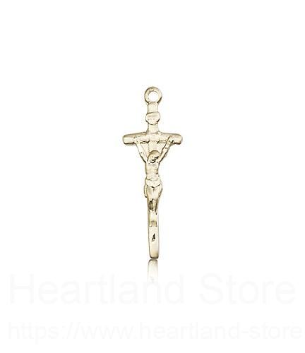 This Papal Crucifix Pendant is made of 14 Karat Gold. The jewelry pendant is sold as pictured and does not come with a chain. All medals are gift boxed in a light blue velvet jewelry box ready for gift giving.