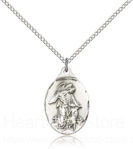 This Guardian Angel Medal is paired with an 18 inch sterling silver lite curb chain as pictured. All medals are gift boxed in a light blue velvet jewelry box ready for gift giving.