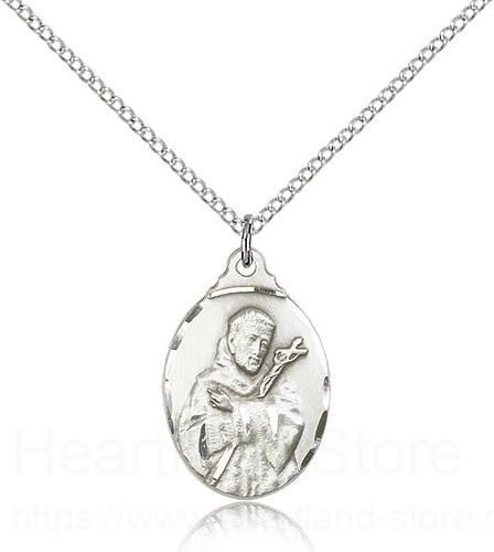 This St. Francis Medal is paired with an 18 inch sterling silver lite curb chain as pictured. All medals are gift boxed in a light blue velvet jewelry box ready for gift giving.