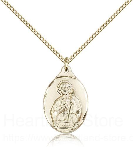 This St. Jude Medal is paired with an 18" gold filled light curb chain as pictured. All medals are gift boxed in a light blue velvet gift box ready for gift giving.