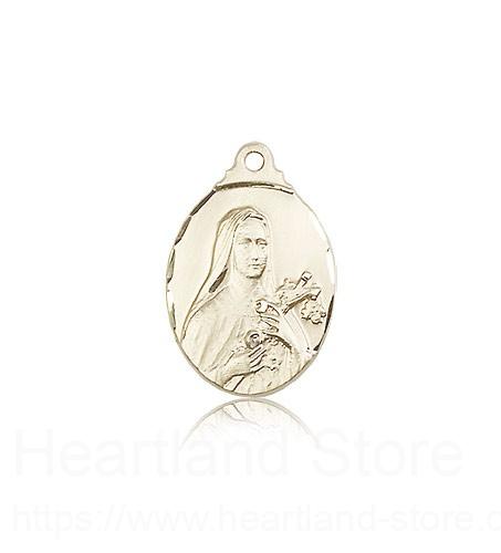 This St. Theresa Medal is made of 14 Karat Gold. The jewelry pendant is sold as pictured and does not come with a chain. All medals are gift boxed in a light blue velvet jewelry box ready for gift giving.