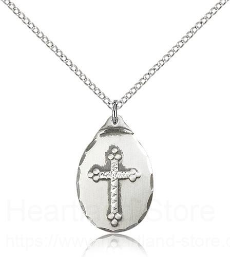 This Cross Pendant is paired with an 18 inch sterling silver lite curb chain as pictured. All medals are gift boxed in a light blue velvet jewelry box ready for gift giving.