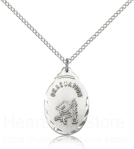 This Graduate Medal is paired with an 18 inch sterling silver lite curb chain as pictured. All medals are gift boxed in a light blue velvet jewelry box ready for gift giving.