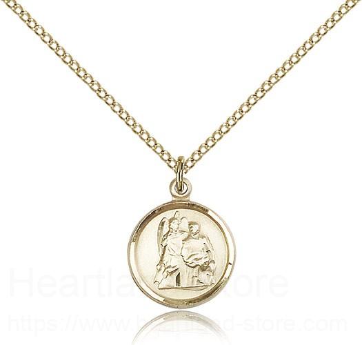 This St. Raphael Medal is paired with an 18" gold filled light curb chain as pictured. All medals are gift boxed in a light blue velvet gift box ready for gift giving.