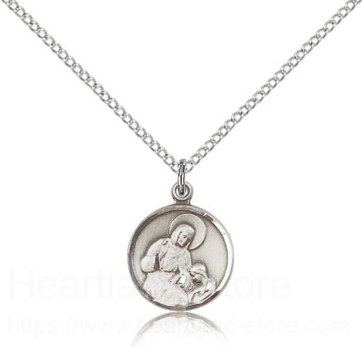 This St. Ann Medal is paired with an 18 inch sterling silver lite curb chain as pictured. All medals are gift boxed in a light blue velvet jewelry box ready for gift giving.