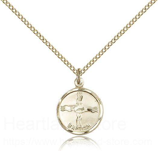 This Baptism Medal is paired with an 18" gold filled light curb chain as pictured. All medals are gift boxed in a light blue velvet gift box ready for gift giving.