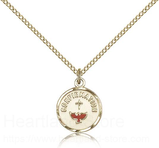 This Confirmation Medal is paired with an 18" gold filled light curb chain as pictured. All medals are gift boxed in a light blue velvet gift box ready for gift giving.
