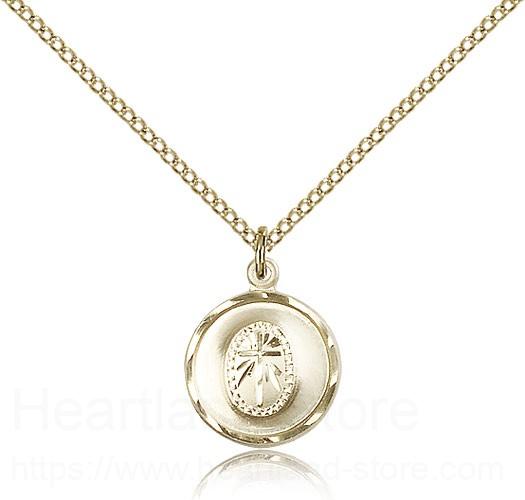 This Cross Pendant is paired with an 18" gold filled light curb chain as pictured. All medals are gift boxed in a light blue velvet gift box ready for gift giving.