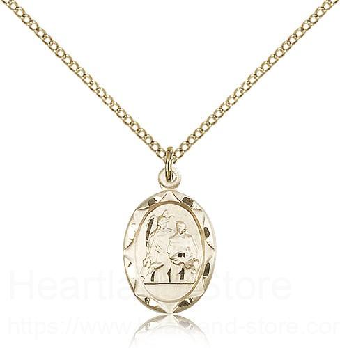 This St. Raphael Medal is paired with an 18" gold filled light curb chain as pictured. All medals are gift boxed in a light blue velvet gift box ready for gift giving.