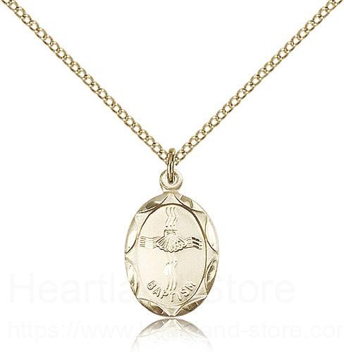 This Baptism Medal is paired with an 18" gold filled light curb chain as pictured. All medals are gift boxed in a light blue velvet gift box ready for gift giving.