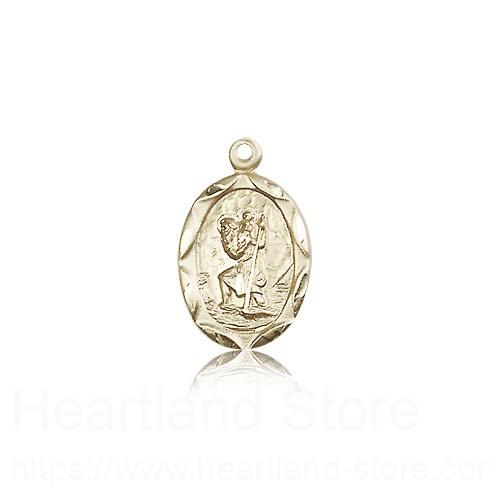 This St. Christopher Medal is made of 14 Karat Gold. The jewelry pendant is sold as pictured and does not come with a chain. All medals are gift boxed in a light blue velvet jewelry box ready for gift giving.