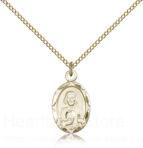 This St. Jude Medal is paired with an 18" gold filled light curb chain as pictured. All medals are gift boxed in a light blue velvet gift box ready for gift giving.