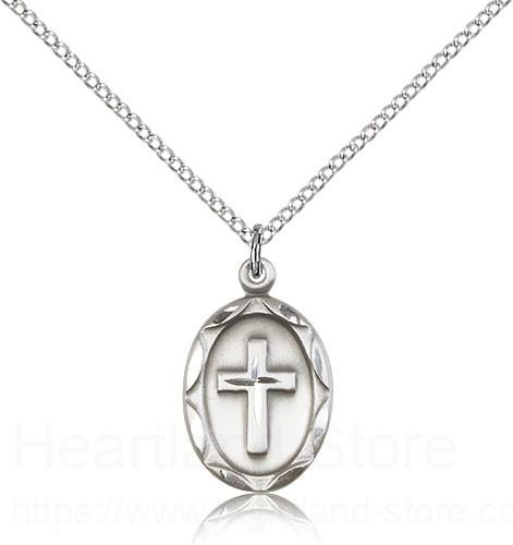 This Cross Pendant is paired with an 18 inch sterling silver lite curb chain as pictured. All medals are gift boxed in a light blue velvet jewelry box ready for gift giving.