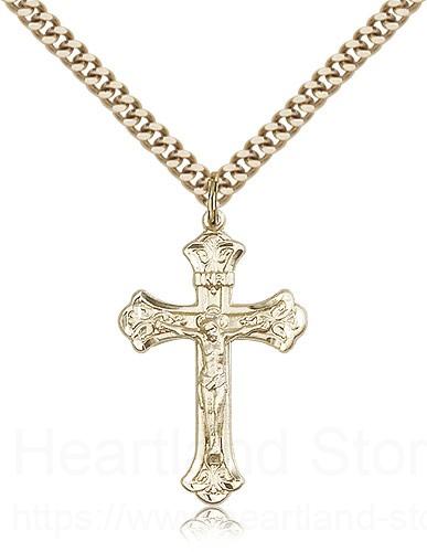 About this Crucifix Pendant, Gold Filled + 24" 2.4mm Gold Plated Endless Chain