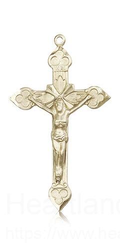 This Crucifix Pendant is made of 14 Karat Gold. The jewelry pendant is sold as pictured and does not come with a chain. All medals are gift boxed in a light blue velvet jewelry box ready for gift giving.