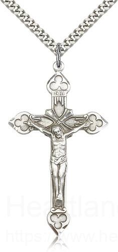 This Crucifix Pendant is paired with a 24 inch stainless steel heavy curb chain as pictured. All medals are gift boxed in a light blue velvet jewelry box ready for gift giving.
