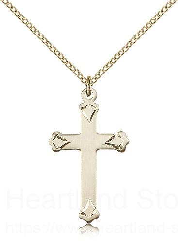 This Cross Pendant is paired with an 18" gold filled light curb chain as pictured. All medals are gift boxed in a light blue velvet gift box ready for gift giving.
