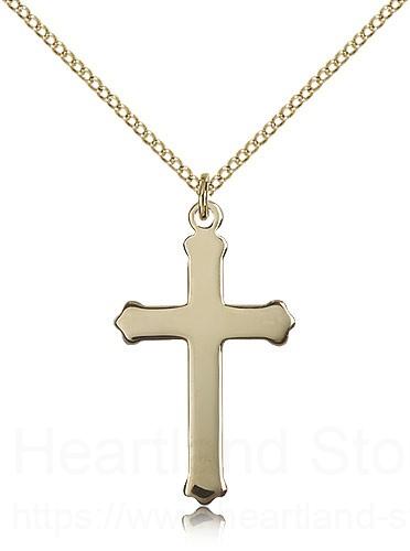 This Cross Pendant is paired with an 18" gold filled light curb chain as pictured. All medals are gift boxed in a light blue velvet gift box ready for gift giving.