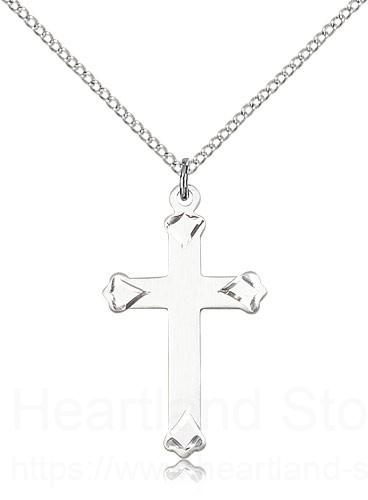 This Cross Pendant is paired with an 18 inch sterling silver lite curb chain as pictured. All medals are gift boxed in a light blue velvet jewelry box ready for gift giving.