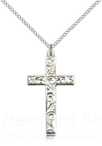 This Cross Pendant is paired with an 18 inch sterling silver lite curb chain as pictured. All medals are gift boxed in a light blue velvet jewelry box ready for gift giving.