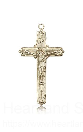 This Crucifix Pendant is made of 14 Karat Gold. The jewelry pendant is sold as pictured and does not come with a chain. All medals are gift boxed in a light blue velvet jewelry box ready for gift giving.