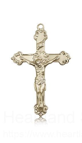 This Crucifix Pendant is made of 14 Karat Gold. The jewelry pendant is sold as pictured and does not come with a chain. All medals are gift boxed in a light blue velvet jewelry box ready for gift giving.