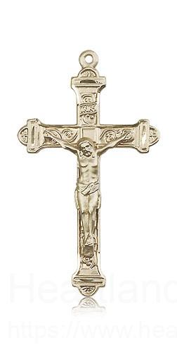 This Crucifix Pendant is made of 14 Karat Gold. The jewelry pendant is sold as pictured and does not come with a chain. All medals are gift boxed in a light blue velvet jewelry box ready for gift giving.