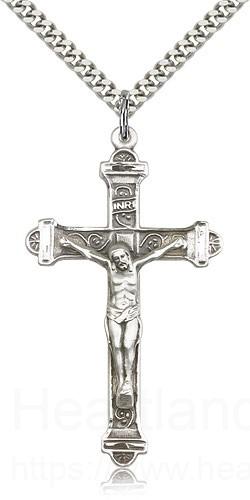 About this Men's Crucifix Pendant Antique Silver Accents Cross Bar Edges + 24" 2.4mm Rhodium Plate Endless Chain