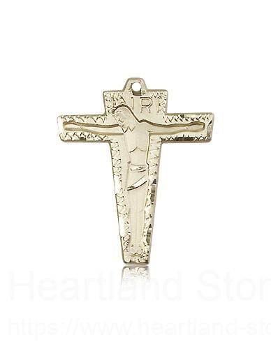 This Primative Crucifix Pendant is made of 14 Karat Gold. The jewelry pendant is sold as pictured and does not come with a chain. All medals are gift boxed in a light blue velvet jewelry box ready for gift giving.