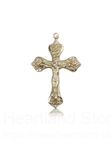 This Crucifix Pendant is made of 14 Karat Gold. The jewelry pendant is sold as pictured and does not come with a chain. All medals are gift boxed in a light blue velvet jewelry box ready for gift giving.