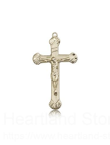 This Crucifix Pendant is made of 14 Karat Gold. The jewelry pendant is sold as pictured and does not come with a chain. All medals are gift boxed in a light blue velvet jewelry box ready for gift giving.