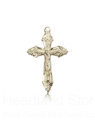 This Crucifix Pendant is made of 14 Karat Gold. The jewelry pendant is sold as pictured and does not come with a chain. All medals are gift boxed in a light blue velvet jewelry box ready for gift giving.