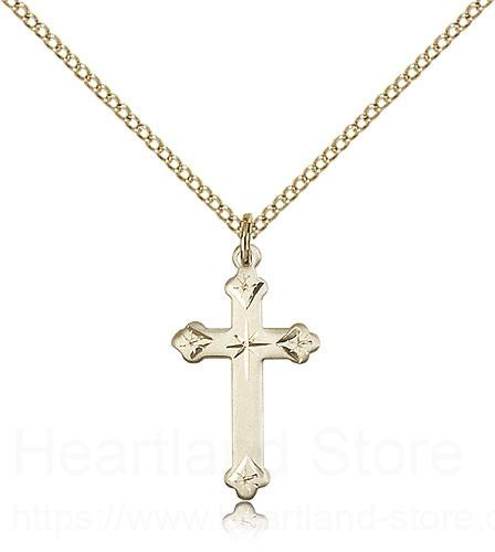 This Cross Pendant is paired with an 18" gold filled light curb chain as pictured. All medals are gift boxed in a light blue velvet gift box ready for gift giving.
