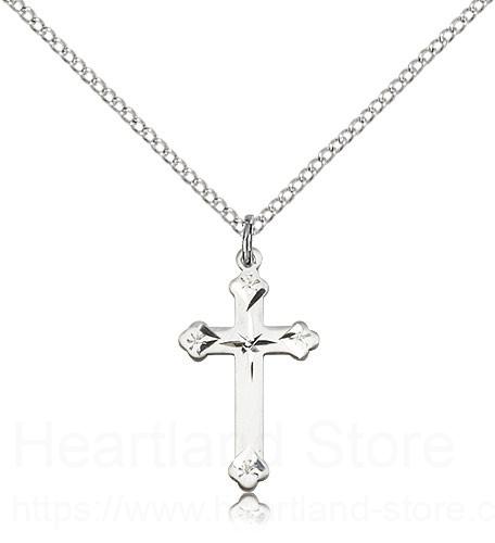 This Cross Pendant is paired with an 18 inch sterling silver lite curb chain as pictured. All medals are gift boxed in a light blue velvet jewelry box ready for gift giving.