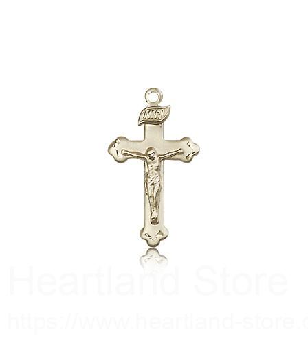 This Crucifix Pendant is made of 14 Karat Gold. The jewelry pendant is sold as pictured and does not come with a chain. All medals are gift boxed in a light blue velvet jewelry box ready for gift giving.