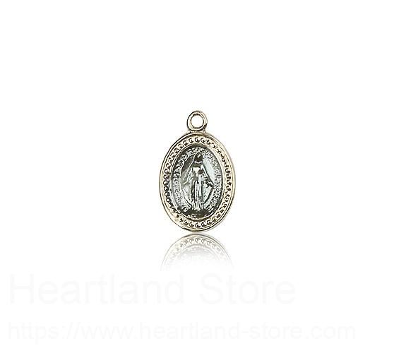 This Miraculous Medal is made of 14 Karat Gold. The jewelry pendant is sold as pictured and does not come with a chain. All medals are gift boxed in a light blue velvet jewelry box ready for gift giving.