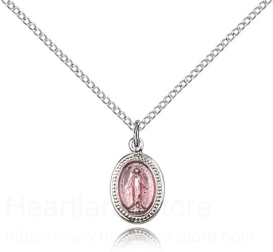 This Miraculous Medal is paired with an 18 inch sterling silver lite curb chain as pictured. All medals are gift boxed in a light blue velvet jewelry box ready for gift giving.