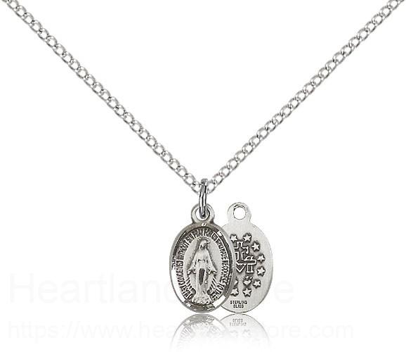 This Miraculous Medal is paired with an 18 inch sterling silver lite curb chain as pictured. All medals are gift boxed in a light blue velvet jewelry box ready for gift giving.