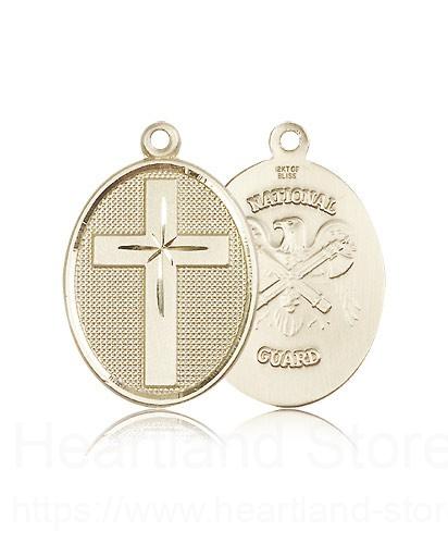This Cross National Guard Medal is made of 14 Karat Gold. The jewelry pendant is sold as pictured and does not come with a chain. All medals are gift boxed in a light blue velvet jewelry box ready for gift giving.