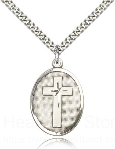 This Cross Pendant is paired with a 24 inch stainless steel heavy curb chain as pictured. All medals are gift boxed in a light blue velvet jewelry box ready for gift giving.
