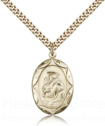 This St. Anthony Medal is paired with a 24 inch stainless steel gold-tone heavy curb chain as pictured. All medals are gift boxed in a light blue velvet jewelry box ready for gift giving.