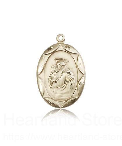 This St. Anthony Medal is made of 14 Karat Gold. The jewelry pendant is sold as pictured and does not come with a chain. All medals are gift boxed in a light blue velvet jewelry box ready for gift giving.