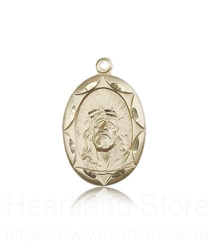 This Ecce Homo Medal is made of 14 Karat Gold. The jewelry pendant is sold as pictured and does not come with a chain. All medals are gift boxed in a light blue velvet jewelry box ready for gift giving.
