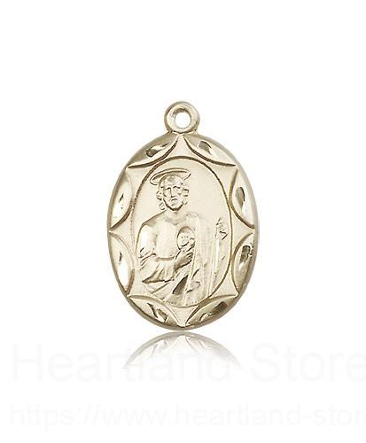 This St. Jude Medal is made of 14 Karat Gold. The jewelry pendant is sold as pictured and does not come with a chain. All medals are gift boxed in a light blue velvet jewelry box ready for gift giving.