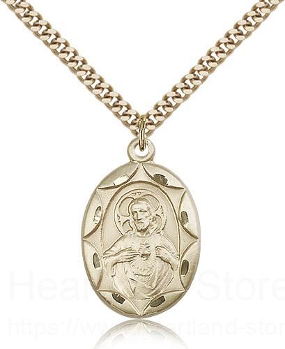This Scapular Medal is paired with a 24 inch stainless steel gold-tone heavy curb chain as pictured. All medals are gift boxed in a light blue velvet jewelry box ready for gift giving.