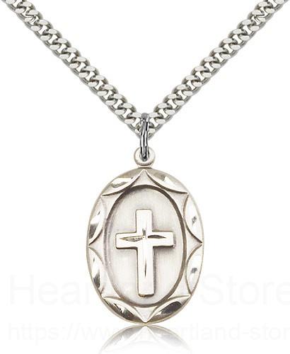 This Cross Pendant is paired with a 24 inch stainless steel heavy curb chain as pictured. All medals are gift boxed in a light blue velvet jewelry box ready for gift giving.