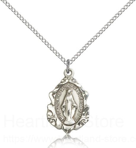 This Miraculous Medal is paired with an 18 inch sterling silver lite curb chain as pictured. All medals are gift boxed in a light blue velvet jewelry box ready for gift giving.