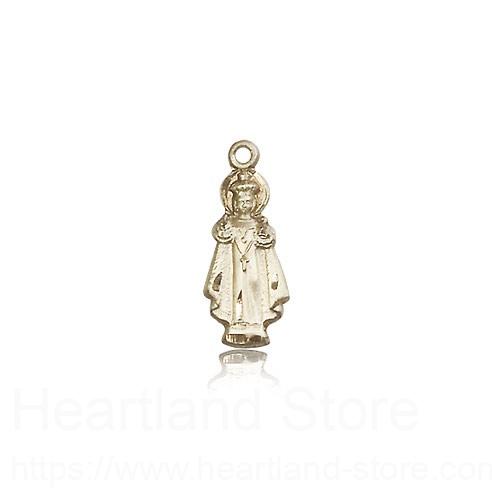 This Infant of Prague Medal is made of 14 Karat Gold. The jewelry pendant is sold as pictured and does not come with a chain. All medals are gift boxed in a light blue velvet jewelry box ready for gift giving.
