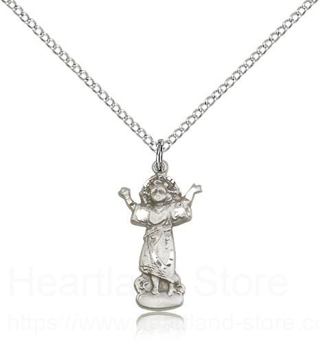 This Divino Nino Medal is paired with an 18 inch sterling silver lite curb chain as pictured. All medals are gift boxed in a light blue velvet jewelry box ready for gift giving.