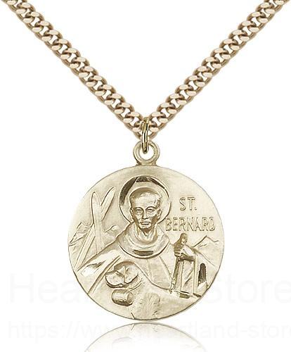 This St. Bernard of Clairvaux Medal is paired with a 24 inch stainless steel gold-tone heavy curb chain as pictured. All medals are gift boxed in a light blue velvet jewelry box ready for gift giving.